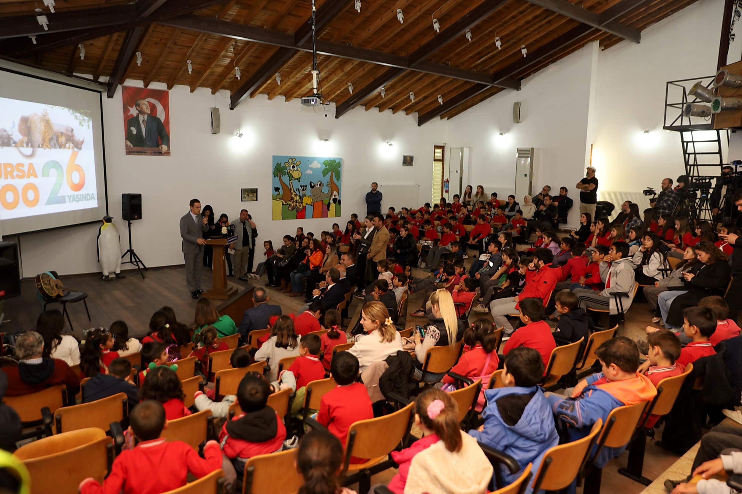 Bursa Büyükşehir Belediyesi Hayvanat Bahçesi’nin 26’ncı yaşı, Büyükşehir Belediyesi Başkanvekili Mehmet Aydın Saldız, Büyükşehir Belediyesi Genel Sekreter Yardımcısı Mehmet Emin Direkçi, Basın Halkla İlişkiler Dairesi Başkanı Mehmet Us, Sağlık İşleri Dairesi Başkanı Düşünsel Şentürk, Büyükşehir Belediye Başkanlığı döneminde Bursa Hayvanat Bahçesi’ni kuran ve halen koordinatörlüğünü üstlenen Erdem Saker ve çok sayıda öğrencinin katılımıyla kutlandı. Tanıtım filminin oynatıldığı programda, konser ve konuşmalar ile çocuklara hayvanları koruma konusunda bilgiler verildi.